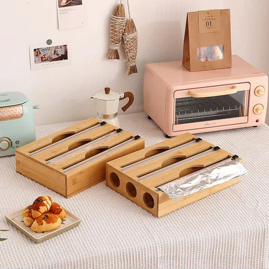 Distributeur Rond 3-en-1 en Bambou – Film, Papier, Aluminium