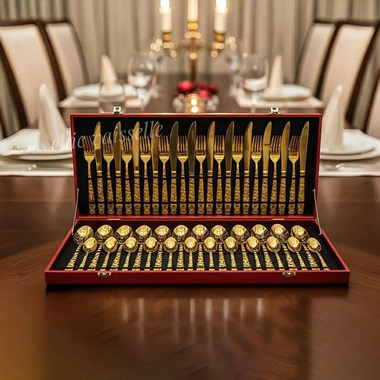 Ménagère de 48 Pièces en Couverts Dorés de Luxe avec Coffret Élégant